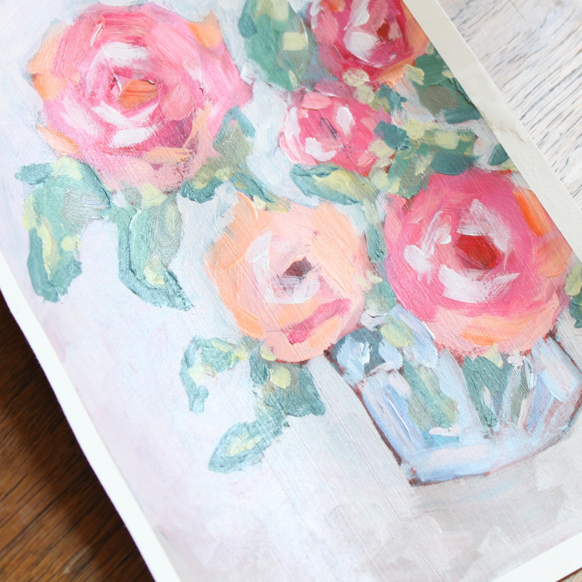 Original mixed media floral painting on paper. 7 in. X 10 in.