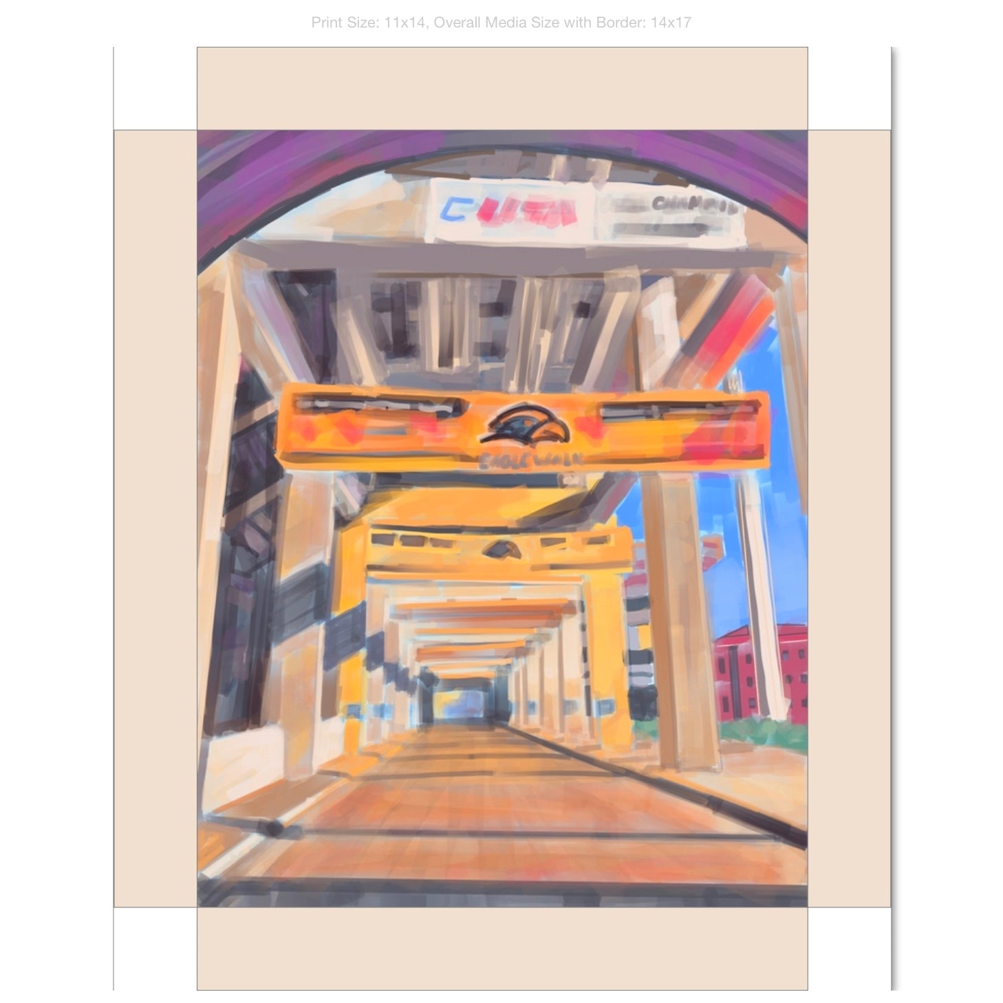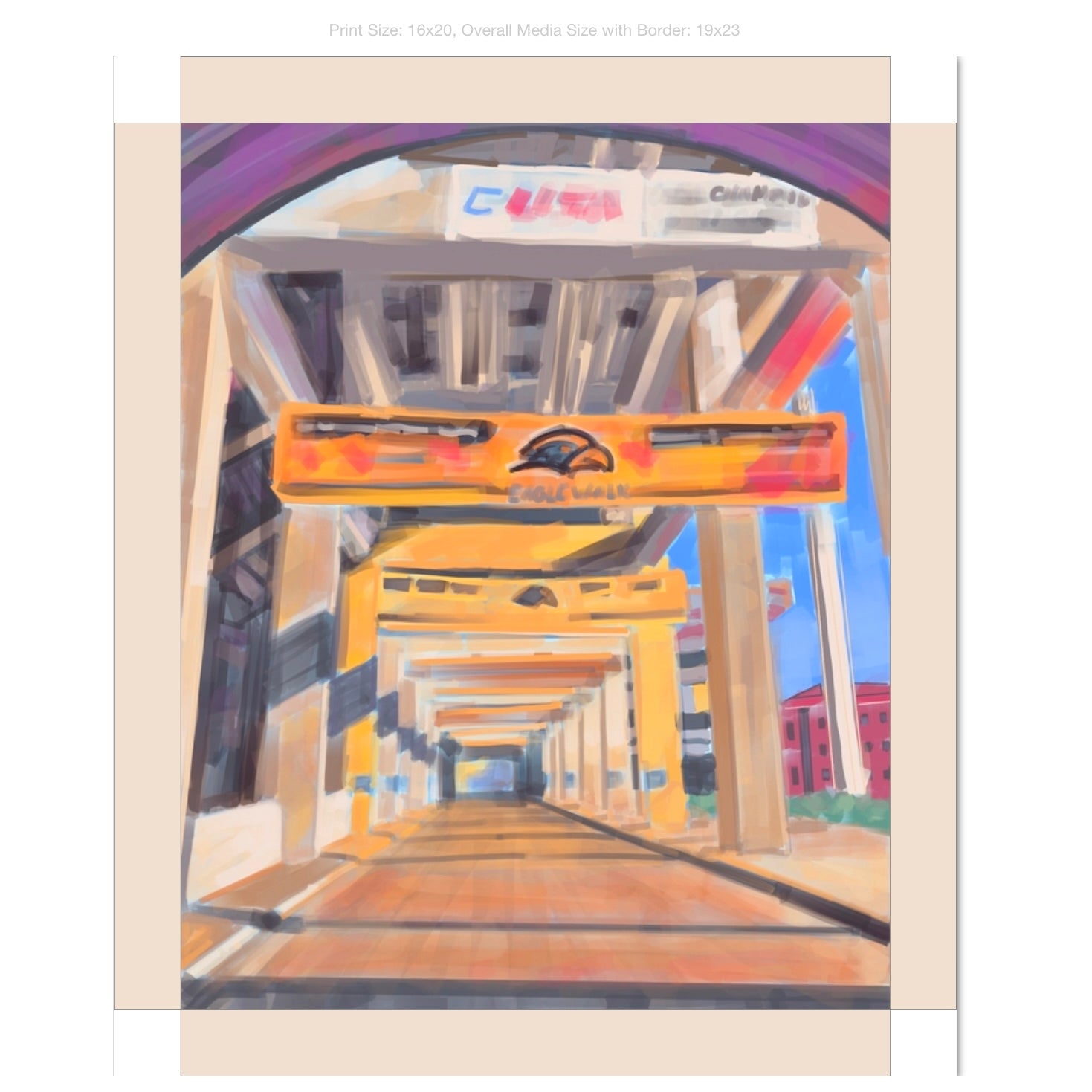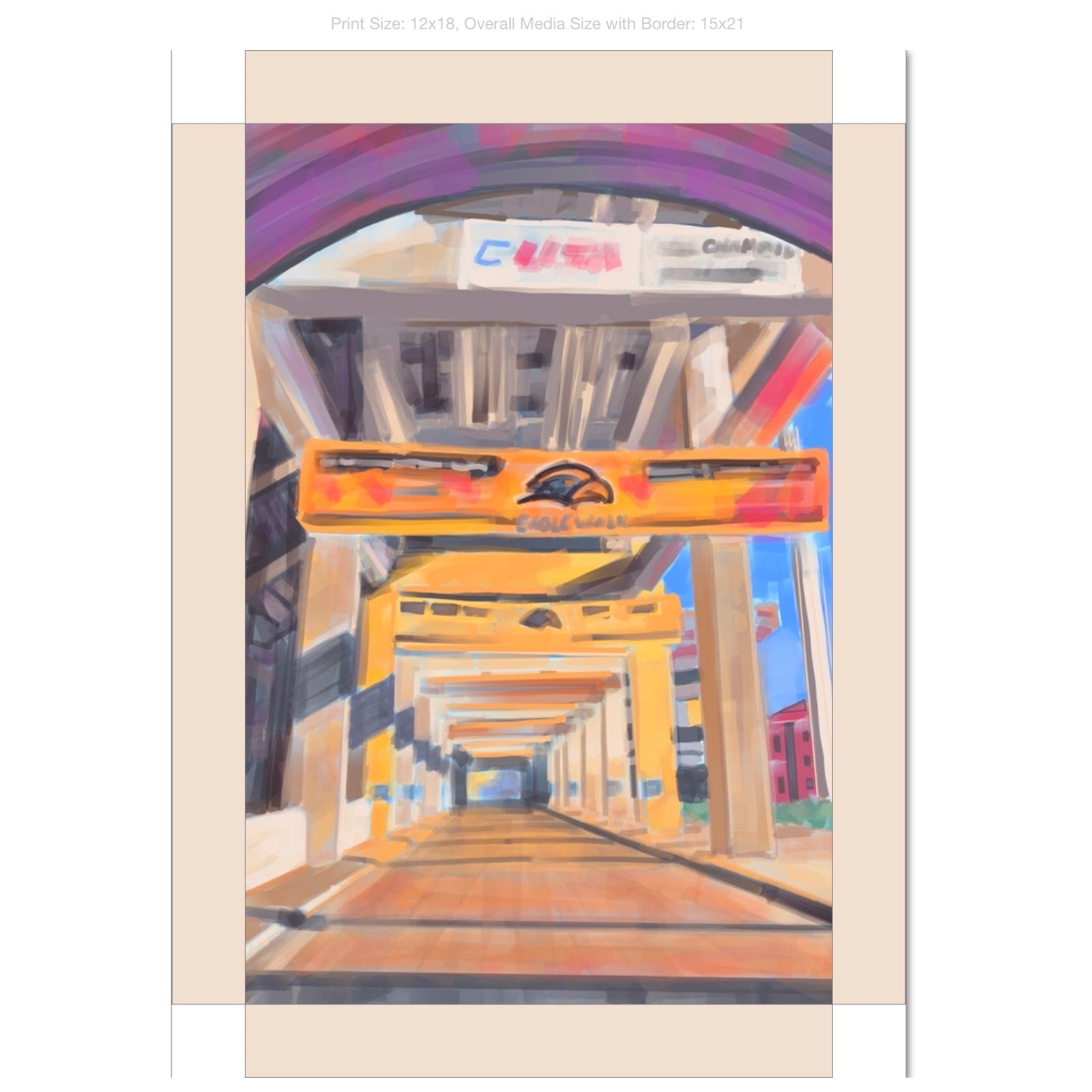 The canvas artwork will be mounted over 1.5 inch thick (depth) stretcher bars and can be hung unframed or inserted into a canvas floater frame. The sides of the mounted canvas be a solid light beige.