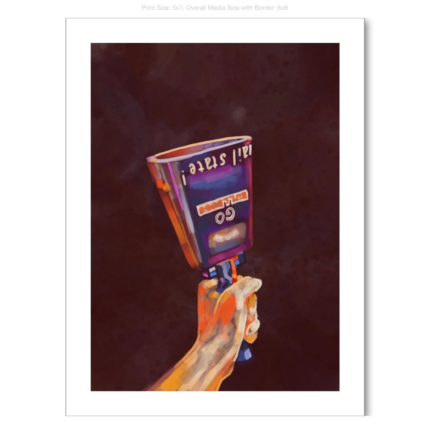 The artwork will be printed on premium heavyweight paper giving the piece a matte finish and watercolor texture. Artwork will be set within a 0.5” border to allow various framing options.