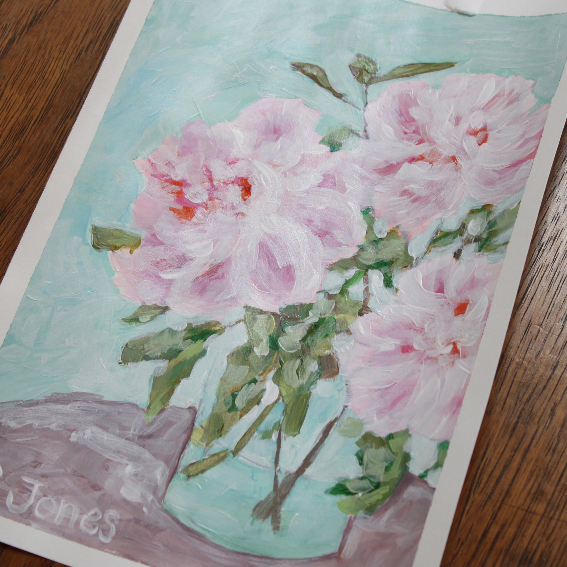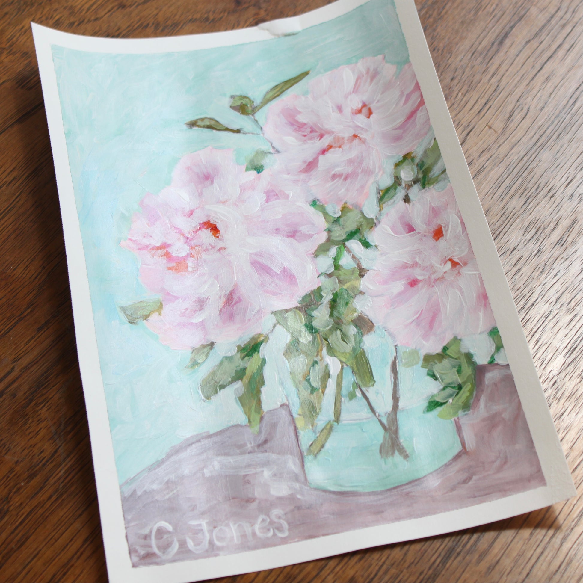 Original mixed media floral painting on paper. 7 in. X 10 in.