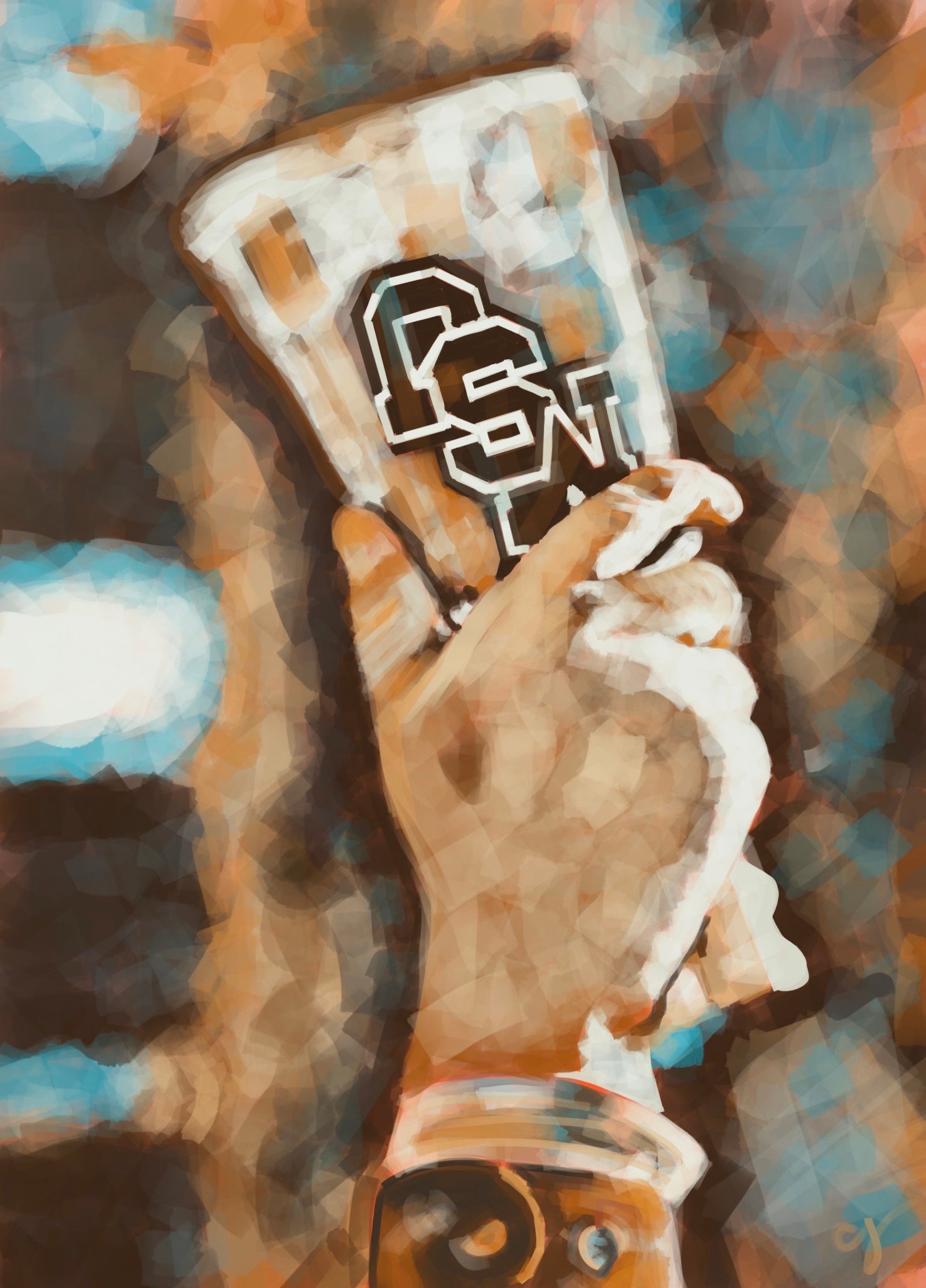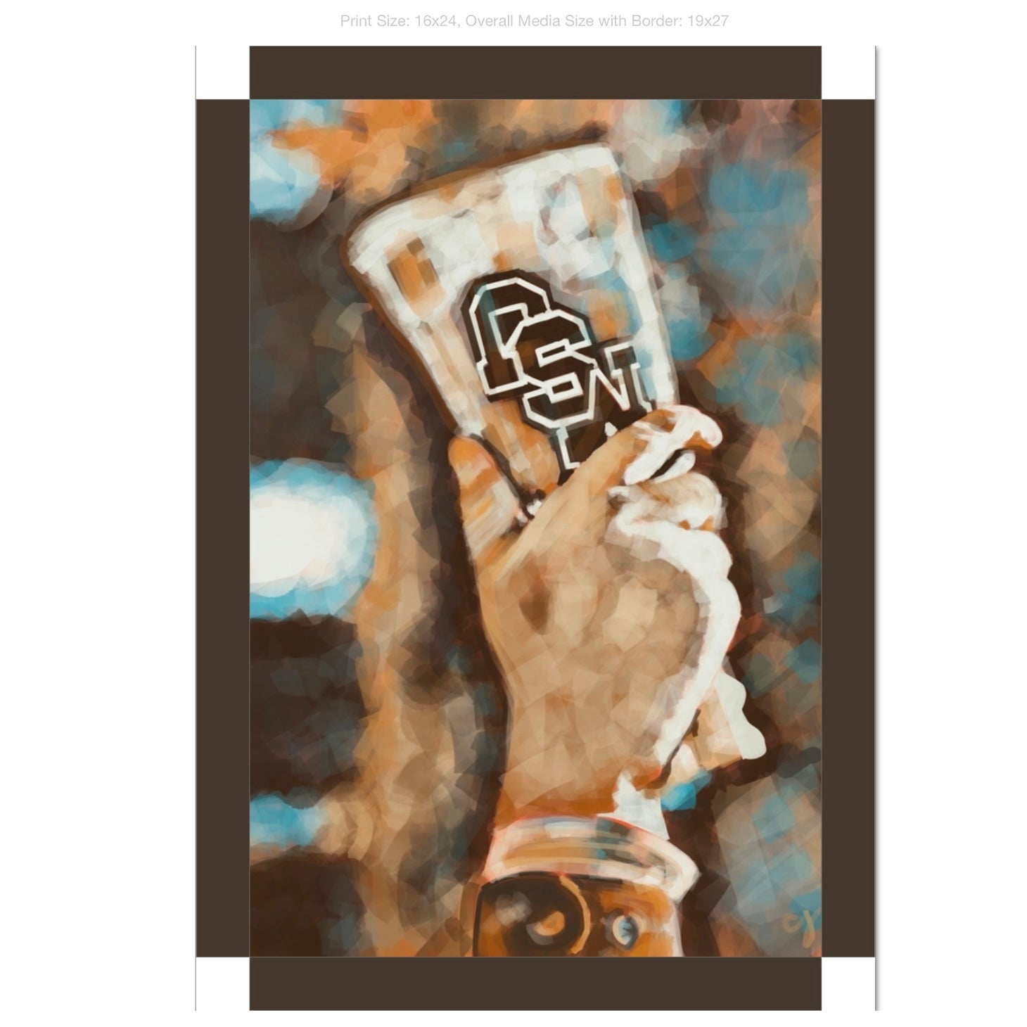 The canvas artwork will be mounted over 1.5 inch thick (depth) stretcher bars and can be hung unframed or inserted into a canvas floater frame. The sides of the mounted canvas be a solid brown.