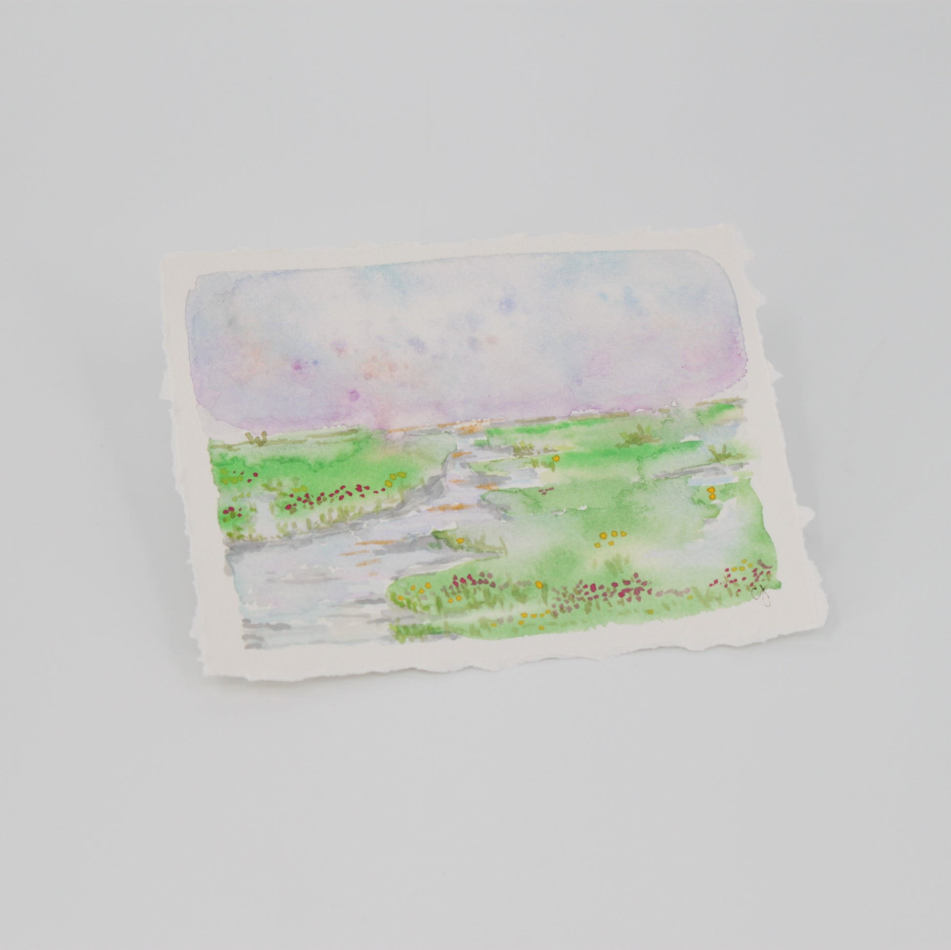 Abstract watercolor landscape on heavy watercolor paper with metallic gold accents. Artwork measures approximately 4.25" x 5.5" with hand torn edges allowing it to be float mounted in a frame of your choice.